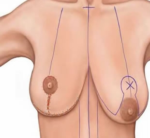 Baseado nestes aspectos, em grande parte dos casos, consegue – se sustentação das mamas através de cicatriz somente ao redor das aréolas , mamas mais caídas exigirão cicatrizes ao redor das aréolas e inferiormente, situações de excesso de pele extremo resultarão em cicatriz como um T invertido disfarçadas no sulco da mama.